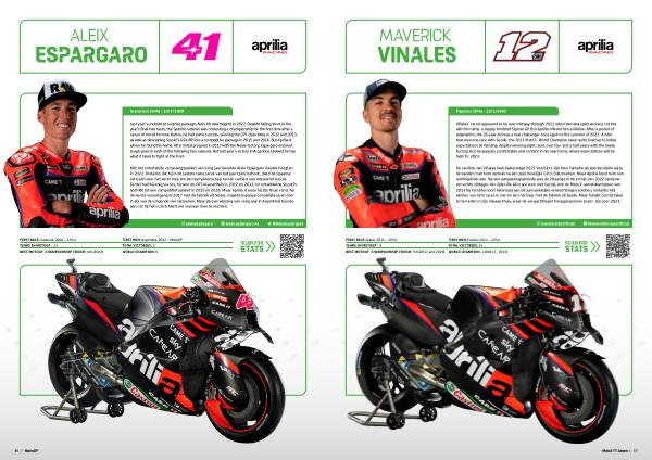 Last year ’ s undoubted surprise package , Aleix hit new heights in 2022 . Despite falling short in the year ’ s final two races , the Spanish veteran was contesting a championship for the first time after a career of mixed fortune . Before , he had some success , winning the CRT class titles in 2012 and 2013 , as well as developing Suzuki ’ s GSX-RR into a competitive package in 2015 and 2016 . But Aprilia is where he found his home . After initial progress in 2017 with the Noale factory , Espargaro endured tough years in each of the following four seasons . But last year ’ s victory in Argentina showed he has what it takes to fight at the front .