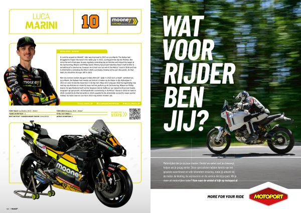 Men zou kunnen stellen dat geen enkele MotoGP™-rijder in 2022 zich zo heeft verbeterd als Luca Marini . De Italiaan had moeite om indruk te maken op de klasse in zijn debuutjaar in 2021 en scoorde slechts twee keer in de top-tien . Maar eind vorig jaar deed hij regelmatig mee met top-zes-finishes en miste hij maar net het podium op de Sachsenring , Misano en Phillip Island . De geschiedenis heeft echter bewezen dat de halfbroer van Valentino Rossi een beetje langzaam op gang komt . Hij behaalde één overwinning in de Moto2™-klasse in 2018 en twee in 2019 voordat hij de titel betwistte in 2020 , waarbij hij die uiteindelijk op slechts negen punten misliep . Op basis daarvan zou hij in 2023 nog sterker moeten zijn .