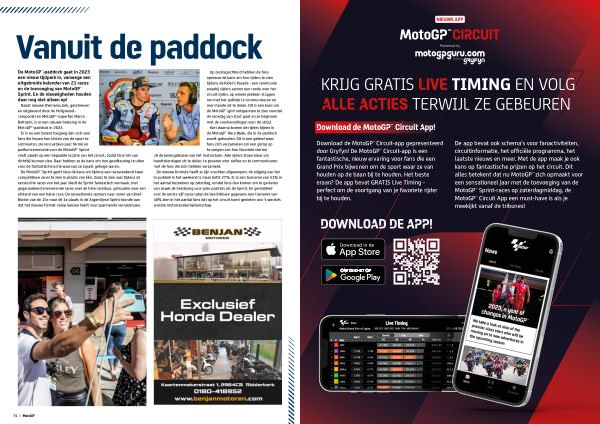Naast nieuwe themamuziek , geschreven en uitgevoerd door de Hollywoodcomponist en MotoGP™-superfan Marco Beltrami , is er een nieuwe beleving in de MotoGP™-paddock in 2023 . Er is nu een betere toegang dan ooit voor fans die hopen hun idolen van de sport te ontmoeten . De innovatieve parc fermé en podiumceremonie voor de MotoGP™ Sprint vindt plaats op een bepaalde locatie van het circuit , zodat fans het van dichtbij kunnen zien . Daar hebben ze de kans om hun goedkeuring te uiten voor de fantastische actie waarvan ze zojuist getuige waren . De MotoGP™ Sprint geeft fans de kans om tijdens een raceweekend twee competitieve races te zien in plaats van één . Zoals te zien was tijdens de eerste drie races van het jaar , biedt de Sprint fantastisch vermaak , met gegarandeerd enerverende races over de hele raceduur , gehouden over een afstand van een halve race . De sensationele opmars naar voren van Brad Binder van de 15e naar de 1e plaats in de Argentijnse Sprint toonde aan dat het nieuwe format volop kansen biedt voor spannende verrassingen .