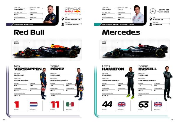 Lewis HAMILTON George RUSSELL Base Brackley , UK Team Chief Toto Wolff Mercedes Mercedes-AMG PETRONAS F1 ® Team Power Unit Mercedes First Team Entry 1970 World Championships 8 Highest Race Finish P1 ( X116 ) Pole Positions 130 Fastest Laps 99 Date of Birth 07.01.1985 Place of birth Stevenage , England Podiums 198 Highest finish P1 ( X103 ) GP entered 343 Championships 7 Championship Points 4724.5 Date of Birth 15.02.1998 Place of birth King ' s Lynn , England Podiums 13 Highest finish P1 ( X2 ) GP entered 115 Championships 0 Championship Points 580 Chassis W15 Number Number Nationality Nationality 101