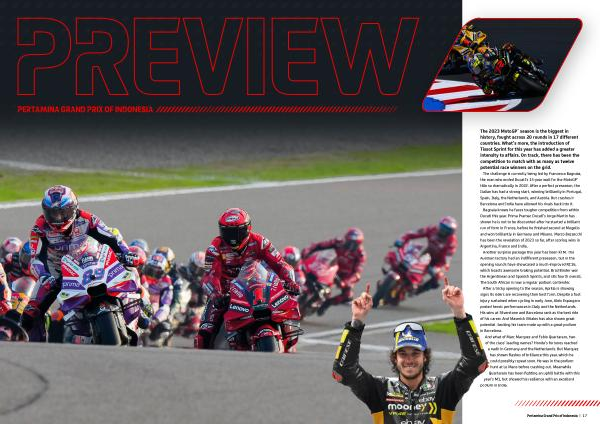 The 2023 MotoGP™ season is the biggest in history , fought across 20 rounds in 17 different countries . What ’ s more , the introduction of Tissot Sprint for this year has added a greater intensity to affairs . On track , there has been the competition to match with as many as twelve potential race winners on the grid . The challenge is currently being led by Francesco Bagnaia , the man who ended Ducati ’ s 15-year wait for the MotoGP™ title so dramatically in 2022 . After a perfect preseason , the Italian has had a strong start , winning brilliantly in Portugal , Spain , Italy , the Netherlands , and Austria . But crashes in Barcelona and India have allowed his rivals back into it . Bagnaia knows he faces tougher competition from within Ducati this year . Prima Pramac Ducati ' s Jorge Martin has shown he is not to be discounted after he started a brilliant run of form in France , before he finished second at Mugello and won brilliantly in Germany and Misano . Marco Bezzecchi has been the revelation of 2023 so far , after scoring wins in Argentina , France and India . Another surprise package this year has been KTM . The Austrian factory had an indifferent preseason , but in the opening rounds have showcased a much-improved RC16 , which boasts awesome braking potential . Brad Binder won the Argentinean and Spanish Sprints , and sits fourth overall . The South African is now a regular podium contender . After a tricky opening to the season , Aprilia is showing signs its riders are recovering their best form . Despite a foot injury sustained when cycling in early June , Aleix Espargaro posted heroic performances in Italy and the Netherlands . His wins at Silverstone and Barcelona rank as the best ride of his career . And Maverick Viñales has also shown great potential , backing his team-mate up with a great podium in Barcelona . And what of Marc Marquez and Fabio Quartararo , two of the class ’ leading names ? Honda ’ s fortunes reached a nadir in Germany and the Netherlands . But Marquez has shown flashes of brilliance this year , which he could possibly repeat soon . He was in the podium hunt at Le Mans before crashing out . Meanwhile Quartararo has been fighting an uphill battle with this year ’ s M1 , but showed his resilience with an excellent podium in India .