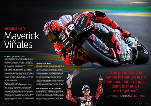 Working with Massimo [ Rivola ] is excellent . Honestly , I have an amazing relationship with him not only on the track , also outside . I know everything he does is to give me the best and this is an important feeling for a rider and also for a person . Also , I will mention Romano [ Albesiano ], the job he is doing is amazing and the bike is becoming better and better , more for my natural riding style , it ’ s a pleasure to ride the bike in a natural way . We have Manual Cazeaux now , who I think is one of the top three crew chiefs in the paddock , and he understands me very well and with him I see myself taking out all the potential , and that ' s something very important because every year I feel faster and faster and this season I ’ m honestly very fast .