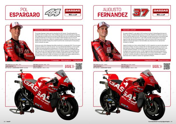 Augusto Fernández es el único rookie de MotoGP™ en 2023 , después de una serie de sobresalientes actuaciones en Moto2™ durante la campaña 2022 . El mallorquín supo templar los nervios en un tenso duelo por el título en Valencia para dar el salto con el GASGAS Factory Racing Tech3 como Campeón del Mundo de Moto2™ . El ' 37 ' ha tenido un camino poco convencional hasta llegar a la categoría reina , entrando en Moto2™ en 2017 después de haber demostrado previamente su velocidad en la categoría europea de Superstock 600 y en la serie europea de Moto2™ . Consiguió un total de 7 victorias y 20 podios a lo largo de cuatro temporadas completas en la categoría intermedia . Ahora el objetivo es replicar esa regularidad en MotoGP™ .