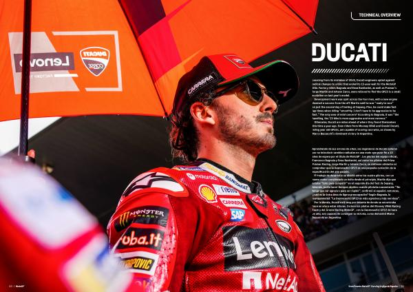 Aprendiendo de sus errores de 2022 , los ingenieros de Ducati optaron por no introducir cambios radicales en una moto que puso fin a 15 años de espera por el título de MotoGP™ . Los pilotos del equipo oficial , Francesco Bagnaia y Enea Bastianini , así como los pilotos del Prima Pramac Racing , Jorge Martín y Johann Zarco , se sintieron aliviados al comprobar que la Desmosedici GP23 es una pequeña evolución de la especificación del año pasado . El trabajo de desarrollo se dividió entre los cuatro pilotos , con un nuevo motor considerado un éxito desde el principio . Martín dijo que estaba " listo para competir " en el segundo día del Test de Sepang . Además , podía hacer tiempos rápidos cuando pilotaba suavemente : " No tengo que ser agresivo para ser rápido ", confirmó el español . Entonces , ¿ cuál es la única área de ligera preocupación ? Según Bagnaia , la manejabilidad : " La Desmosedici GP23 es más agresiva y más nerviosa ". Por lo demás , Ducati está muy por delante de donde se encontraba hace un año a estas alturas . Incluso los pilotos del Mooney VR46 Racing Team y del Gresini Racing MotoGP™ , con la Desmosedici GP22 de hace un año , son capaces de conseguir la victoria , como demostró Marco Bezzecchi en Argentina .