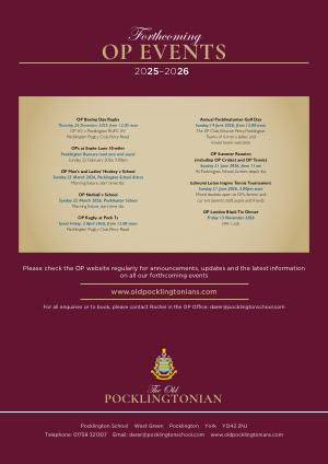 OP Summer Reunion( including OP Cricket and OP Tennis) Sunday 21 June 2026, from 11am At Pocklington School, further details tbc