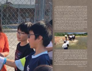 It was a hot day on OMS Japan ’ s campus basketball court , where energetic kids from the neighborhood gathered most afternoons to enjoy the open court , chat with missionaries , and spend time with friends . One little boy turned to Tiana , an OMS missionary , and boldly asked , “ Can I have money for ice cream ?” “ You ’ ll need to work for it ,” Tiana answered with a smile . “ First , you can memorize this Bible verse that we have posted on the sports court .” The little boy nodded and recruited his friends . For the next 45 minutes , 3 eager little faces coached each other as they memorized John 3:16 , reciting it over and over until they got it right and scampered off to get their treat .