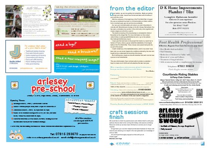 to advertise telephone: 01462 834265 or go to the website: www.onthebuttonarlesey.co.uk