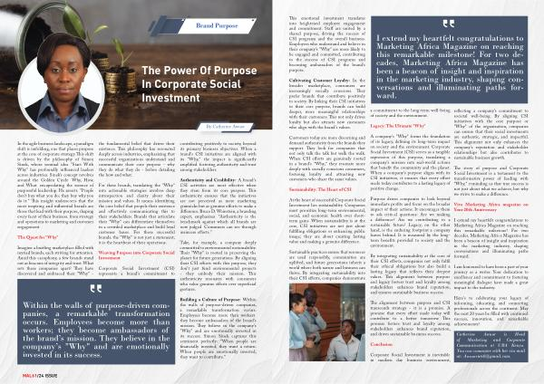The story of purpose and Corporate Social Investment is a testament to the transformative power of leading with " Why ," reminding us that true success is not just about what we achieve , but why we strive to make a difference .
