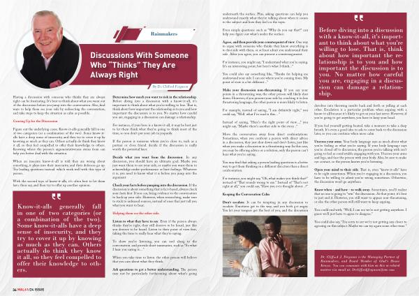 Open your mind to their side . That is , even “ know-it-alls ” have to be right sometimes . When you ' re engaging in a discussion , you have to be willing to admit you ' re wrong sometimes . Otherwise , the discussion won ’ t go anywhere .