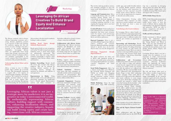 Leveraging African talent is not just a strategic move for marketers ; it is an imperative in today ’ s interconnected world . By authentically representing African culture , building rapport with consumers , enhancing localization efforts , and supporting the creative industry , brands can build strong equity and create lasting connections with African consumers .