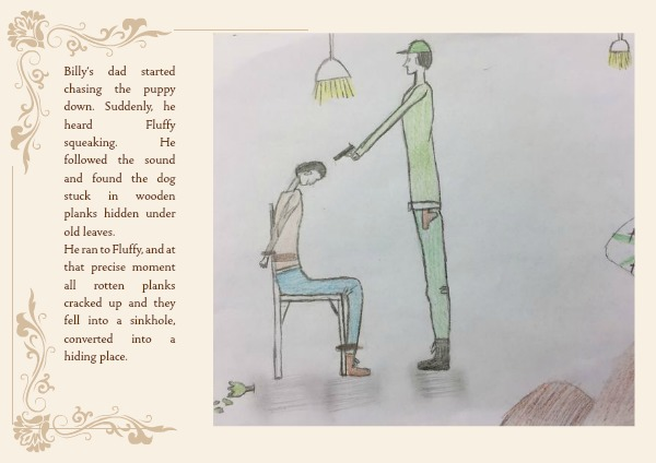 He ran to Fluffy, and at that precise moment all rotten planks cracked up and they fell into a sinkhole, converted into a hiding place.