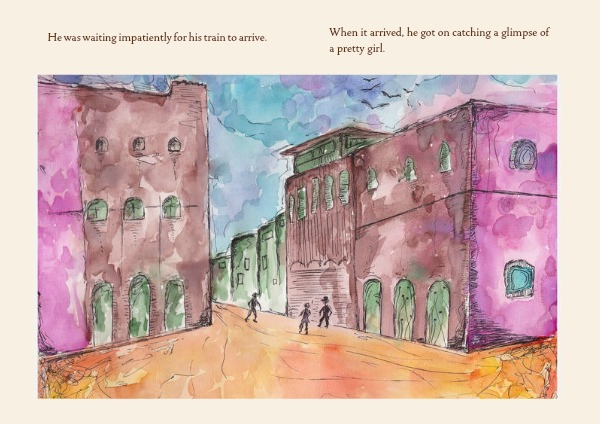When it arrived, he got on catching a glimpse of a pretty girl.