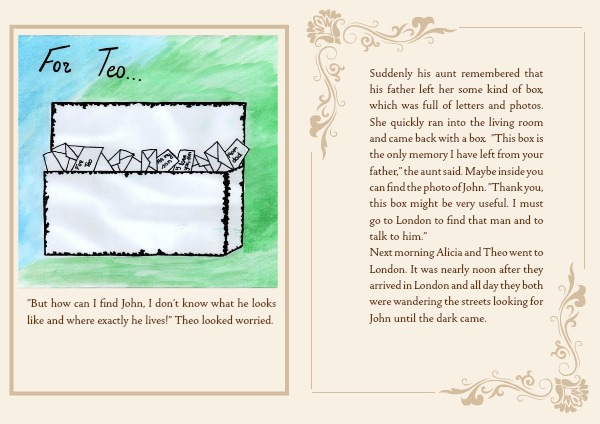 Suddenly his aunt remembered that his father left her some kind of box, which was full of letters and photos. She quickly ran into the living room and came back with a box. "This box is the only memory I have left from your father," the aunt said. Maybe inside you can find the photo of John. "Thank you, this box might be very useful. I must go to London to find that man and to talk to him."
