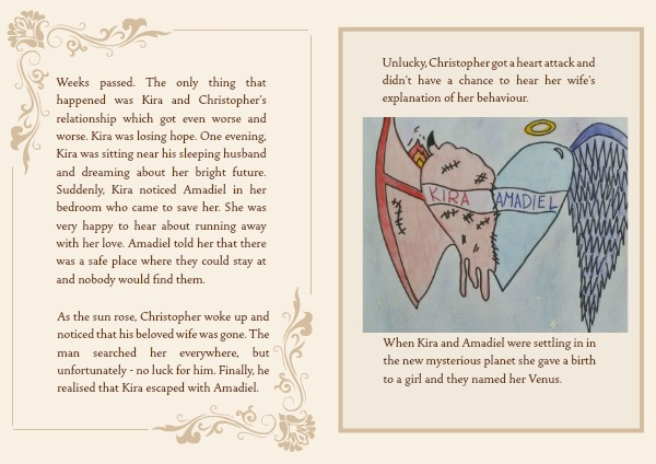 Weeks passed. The only thing that happened was Kira and Christopher’s relationship which got even worse and worse. Kira was losing hope. One evening, Kira was sitting near his sleeping husband and dreaming about her bright future. Suddenly, Kira noticed Amadiel in her bedroom who came to save her. She was very happy to hear about running away with her love. Amadiel told her that there was a safe place where they could stay at and nobody would find them.