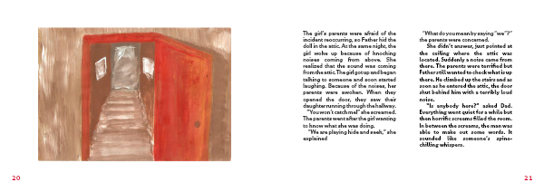 The girl’s parents were afraid of the incident reoccurring, so Father hid the doll in the attic. At the same night, the girl woke up because of knocking noises coming from above. She realized that the sound was coming from the attic. The girl got up and began talking to someone and soon started laughing. Because of the noises, her parents were awoken. When they opened the door, they saw their daughter running through the hallway.