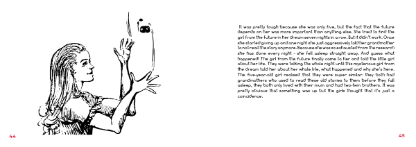 It was pretty tough because she was only five, but the fact that the future depends on her was more important than anything else. She tried to find the girl from the future in her dream seven nights in a row. But it didn’t work. Once she started giving up and one night she just aggressively told her grandmother to not read the story anymore. Because she was so exhausted from the research she has done every night - she fell asleep straight away. And guess what happened! The girl from the future finally came to her and told the little girl about her life. They were talking the whole night until this mysterious girl from the dream told her about her whole life, what happened and why she’s here. The five-year-old girl realised that they were super similar: they both had grandmothers who used to read these old stories to them before they fall asleep, they both only lived with their mum and had two-twin brothers. It was pretty obvious that something was up but the girls thought that it’s just a coincidence.