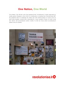 ' One Nation, One World ' is the first pamphlet from revolutionise. it, kindly supported by media partner Speaker ' s Chair. With 14 contributions, including from Pamela Nash MP, the pamphlet aims to challenge the status quo with radical policies on areas such as land value taxation, prisoner-led cooperatives, a truly ' people ' s ' House of Lords, drug law reform and personalised carbon credits. To find out more about revolutionise. it please visit our website.