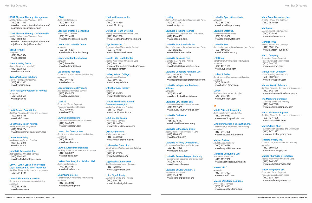 38 ONE SOUTHERN INDIANA 2025 MEMBER DIRECTORY