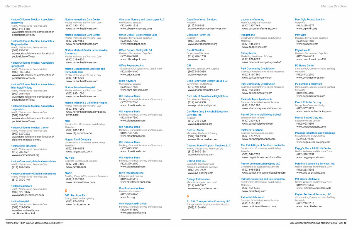 ONE SOUTHERN INDIANA 2025 MEMBER DIRECTORY 43