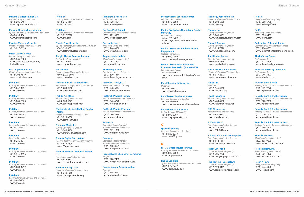ONE SOUTHERN INDIANA 2025 MEMBER DIRECTORY 45