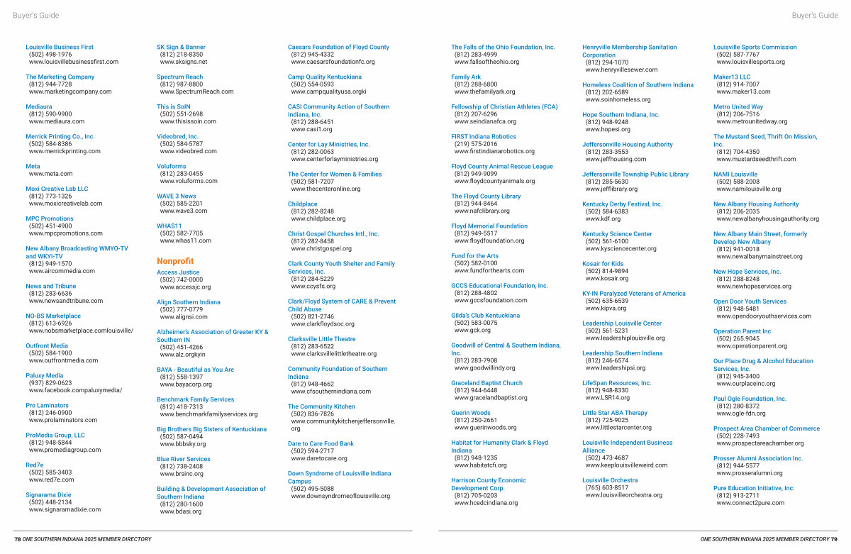78 ONE SOUTHERN INDIANA 2025 MEMBER DIRECTORY