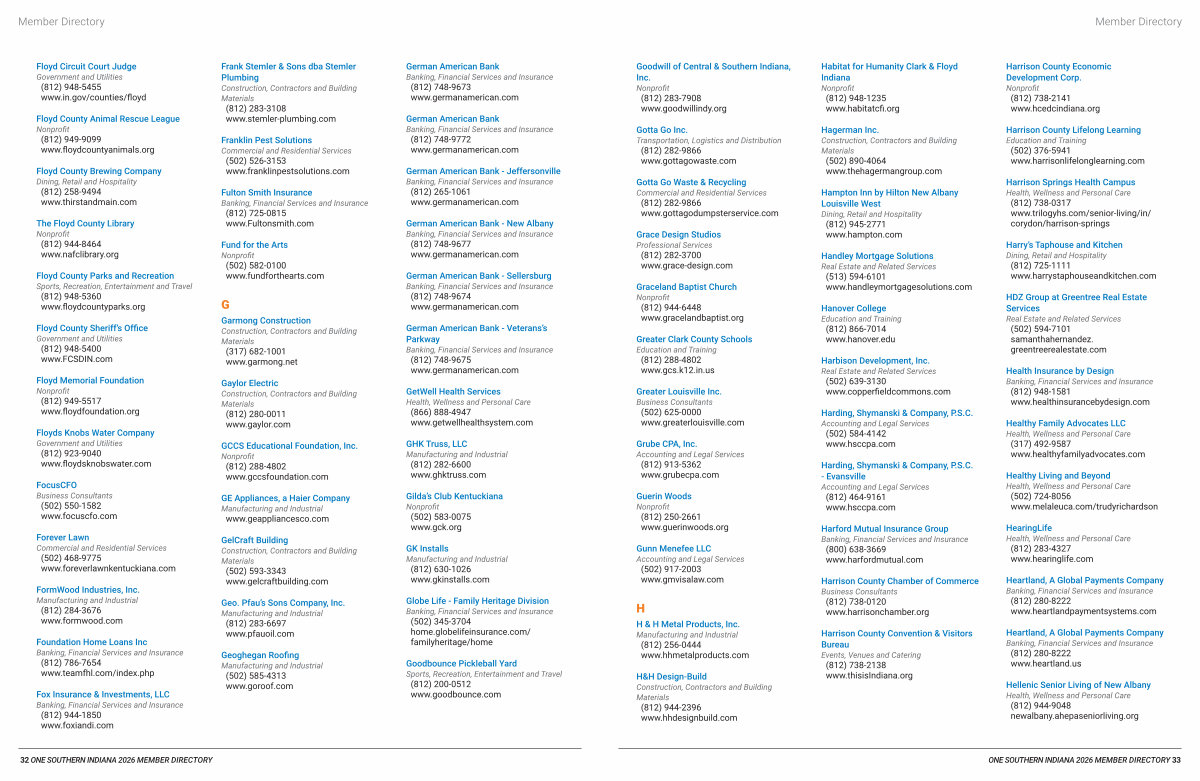 ONE SOUTHERN INDIANA 2026 MEMBER DIRECTORY 33