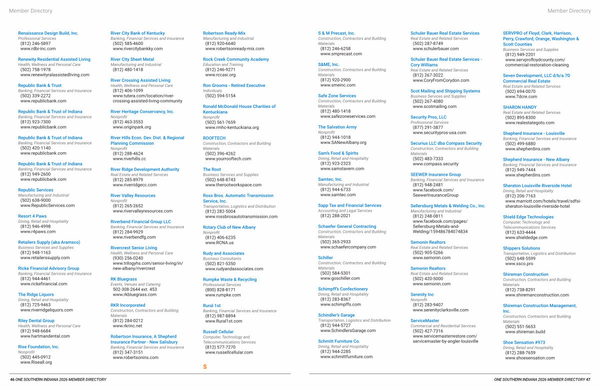 46 ONE SOUTHERN INDIANA 2026 MEMBER DIRECTORY