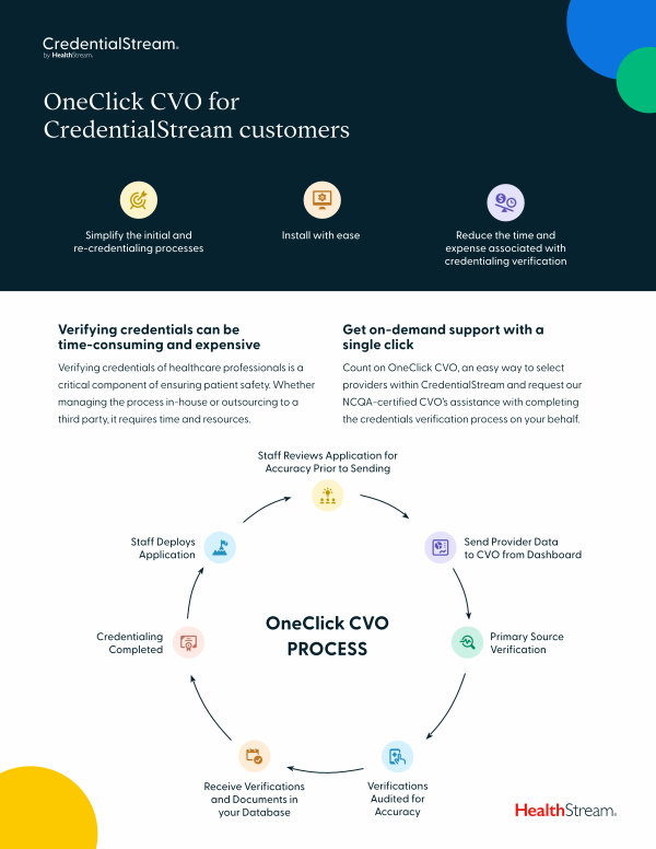 Count on OneClick CVO, an easy way to select providers within CredentialStream and request our NCQA-certified CVO’ s assistance with completing the credentials verification process on your behalf.
