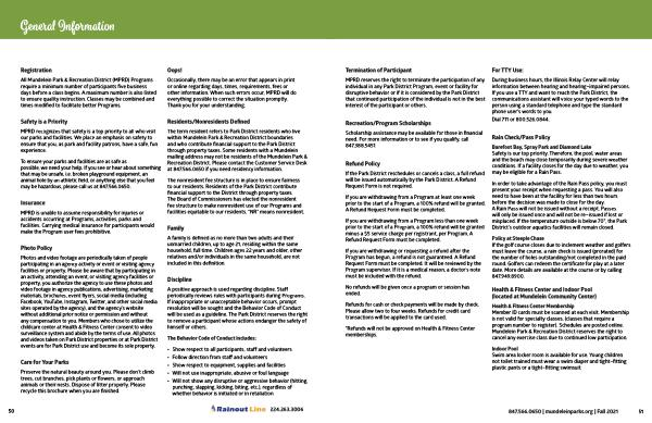 All Mundelein Park & Recreation District ( MPRD ) Programs require a minimum number of participants five business days before a class begins . A maximum number is also listed to ensure quality instruction . Classes may be combined and times modified to facilitate better Programs .