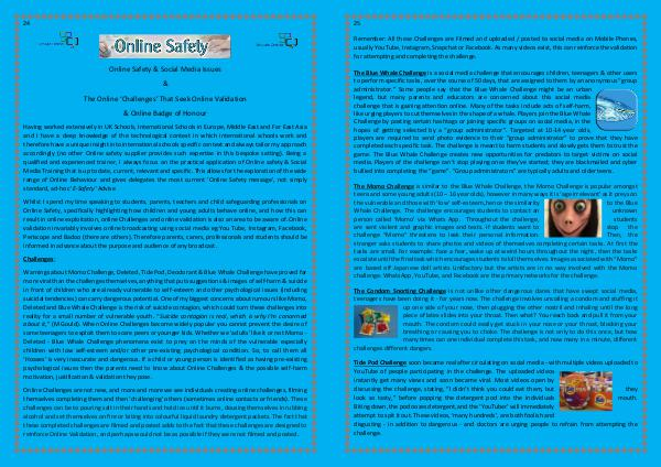 result in online exploitation, online Challenges and online validation is also an area to be aware of. Online