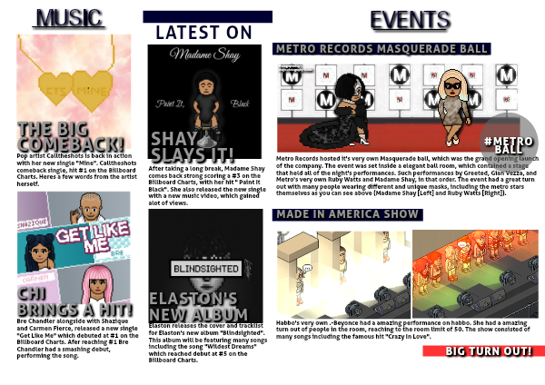 Habbo's very own .-Beyonce had a amazing performance on habbo. She had a amazing turn out of people in the room, reaching to the room limit of 50. The show consisted of many songs including the famous hit "Crazy In Love".