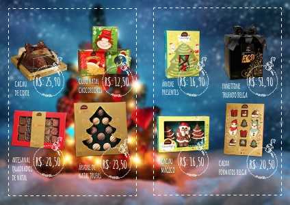 CACAU DE CORTE ARTESANAL QUADRADOS DE NATAL 64 R$: 25,90 R$: 28,50 CUBO NATAL CHOCOBICHOS ÁRVORE DE NATAL TRUFAS R$: 12,50 R$: 23,50