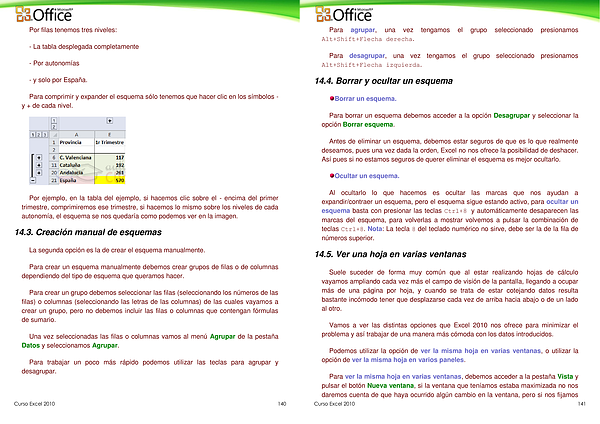 Para comprimir y expander el esquema sólo tenemos que hacer clic en los símbolos y + de cada nivel.