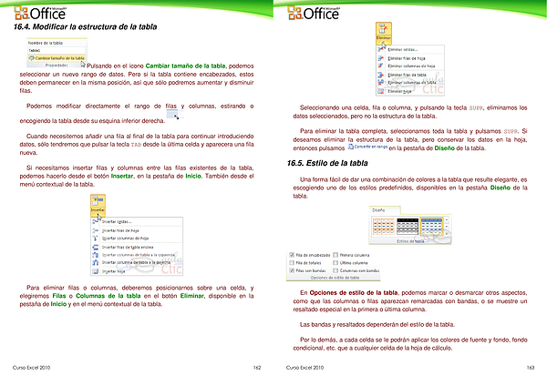 Las bandas y resaltados dependerán del estilo de la tabla.