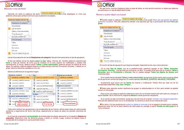 Si bien por defecto vemos los objetos según su tipo: tablas, informes, etc. También podemos mostrarlos por