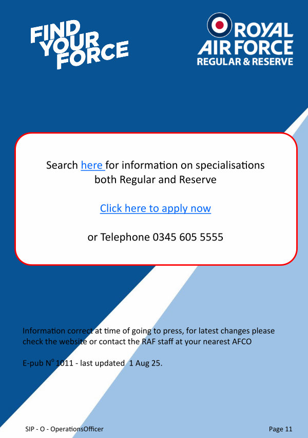 Information correct at time of going to press, for latest changes please check the website or contact the RAF staff at your nearest AFCO
