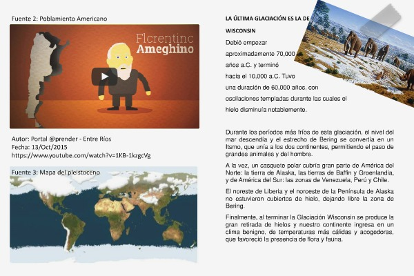 Fuente 2: Poblamiento Americano Autor: Portal @prender - Entre Ríos Fecha: 13/Oct/2015 https://www.youtube.com/watch?v=1KB-1kzgcVg Fuente 3: Mapa del pleistoceno