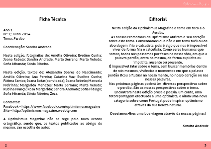 A Optimismus Magazine não se rege pelo novo acordo ortográfico, sendo que, os textos publicados ao abrigo do mesmo, são escolha do autor.