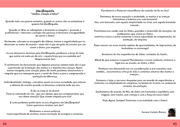 Permitamo-nos sentir, voar no Outro, perceber a imensidão de emoções, de sentimentos que vivem no Outro;