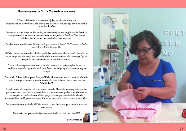 Glória tornou se uma das chefes de linha mais queridas e profissionais de uma empresa de textil na zona da Maia e anos mais tarde teve o próprio negócio juntamente com a irmã mais velha.