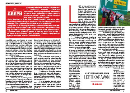 Vojvodina nas je malo zatekla. Novi Sad je ustupio Plavu salu Skupštine Grada, hvala, ali u kojoj nikada nismo videli tehničara, pustili klimu, povezali opremu... U ostalim gradovima policija je, raspoložena da podeli iskustva, tvrdila da nema zabeleženih napada na LGBTI osobe i da se to ne dešava, dok same LGBTI osobe tvrde da nasilje jeste prisutno. U Vrbasu, Apatinu i Zrenjaninu policija je pratila „ Karavan“ svuda po gradu, sve do izlaska vozila sa teritorije grada – naređenja i uputstva, kažu.
