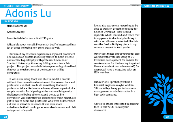 Other cool things about yourself: I also worked with Professor Liang at UC Riverside over a patent for an idea for smoke alarms for the hearing impaired. I have a bunch of non science stuff, for example: I have a magazine with an ISSN number.