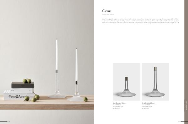 Varje Cirrus ljusstake väger över ett kilo, mycket tack vare den massiva foten. Tyngden är dels en hommage till råvaran glas, dels en följd av ambitionen att skapa något lika ståtligt som en kandelaber fast med bara ett enda ljus. Cirrus reducerade form lyfter inte fram sig själv i första hand. Istället är det materialen och en lek med matt, transparent och blankt som ger karaktär. Fotens frostade insida övergår i en helt