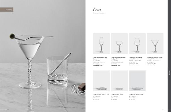 Carat martini glas 25cl 2-pack Art. nr. 6590121 H 176 mm B 108 mm I 25 cl Rek. pris 559:- Kampanjpris 440:- |