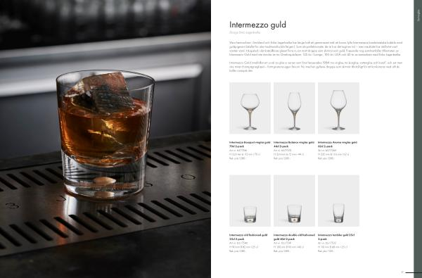 Intermezzo Gold innehåller ett urval av glas ur serien som först lanserades 1984: tre vinglas, tre barglas, vattenglas och karaff, och sist men inte minst champagneglaset – formgivarens egen favorit. Nu med en gyllene droppe som skimrar tillräckligt för att konkurrera med allt du häller ovanpå den.