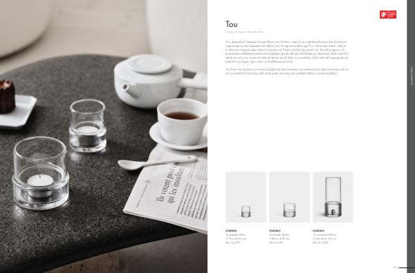 Tou , skapad av Claesson Koivisto Rune och Orrefors , visar hur en etablerad funktion kan få ny form . Inspirerade av den klassiska stormlyktan , har formgivarna delat upp Tou i två komponenter : dels ett fundament i tjockare glas , dels en tunnare och högre cylinder placerad inuti . De olika lagren och tjocklekarna reflekterar rummet och ljuslågan på ett sätt som får blicken att dröja kvar . Duka med Tou både ute och inne . Ljusen är lätta att tända när du lyfter av överdelen . Och med det höga glaset på plats brinner lågan lugnt , även om kvällsbrisen kommer .