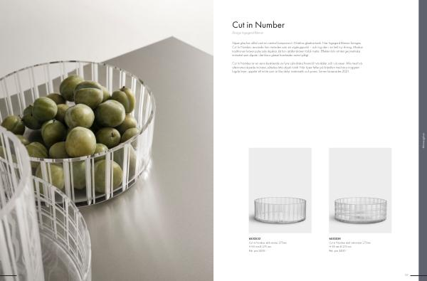 Cut In Number är en serie bestående av fyra cylindriska föremål : två skålar och två vaser . Alla med två alternativa slipade mönster , således åtta objekt totalt . När ljuset faller på kristallen med sina noggrant lagda linjer , uppstår ett möte som är lika delar matematik och poesi . Serien lanserades 2021 .