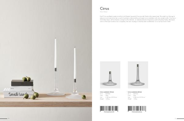 Each Cirrus candlestick weighs more than one kilogram( upwards of two pounds), thanks to the massive base. The weight is an homage to glass as a raw material, but also a result of wanting to make something as majestic as a candelabra, with only a single candle. Cirrus has a minimalistic shape, with its character coming from the materials- an interplay between transparency, matte and glossy finishes. The frosted interior of the base transitions into a completely clear stem, leading to a stainless-steel candleholder. Cirrus was launched in 2020.