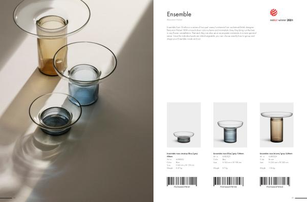 Ensemble from Orrefors is a series of two-part vases / containers from acclaimed British designer Benjamin Hubert. With a toned-down color scheme and minimalistic lines, they bring out the best in any flower constellation. That said, they can also serve as exquisite containers in a more general sense. Since the individual parts are interchangeable, you can choose exactly how to group and shape your Ensemble, inside and out.