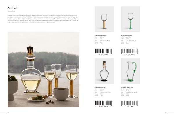 Gunnar Cyrén is one of the great designers in Swedish glass history. In 1991, he created this set, which is still used at the annual Nobel Banquet at Stockholm City Hall – an unparalleled gala where invited laureates from around the world celebrate with over 1,000 guests, including members of the Swedish royal family, prestigious politicians, scientists and artists. The collection, which is mouth-blown in Sweden and hand-painted with details in real 21 carat gold, includes wine glasses, beer glasses, champagne glasses, a pitcher and a carafe. The entire Nobel set is now a highly coveted collectors’ item, in both Sweden and internationally.
